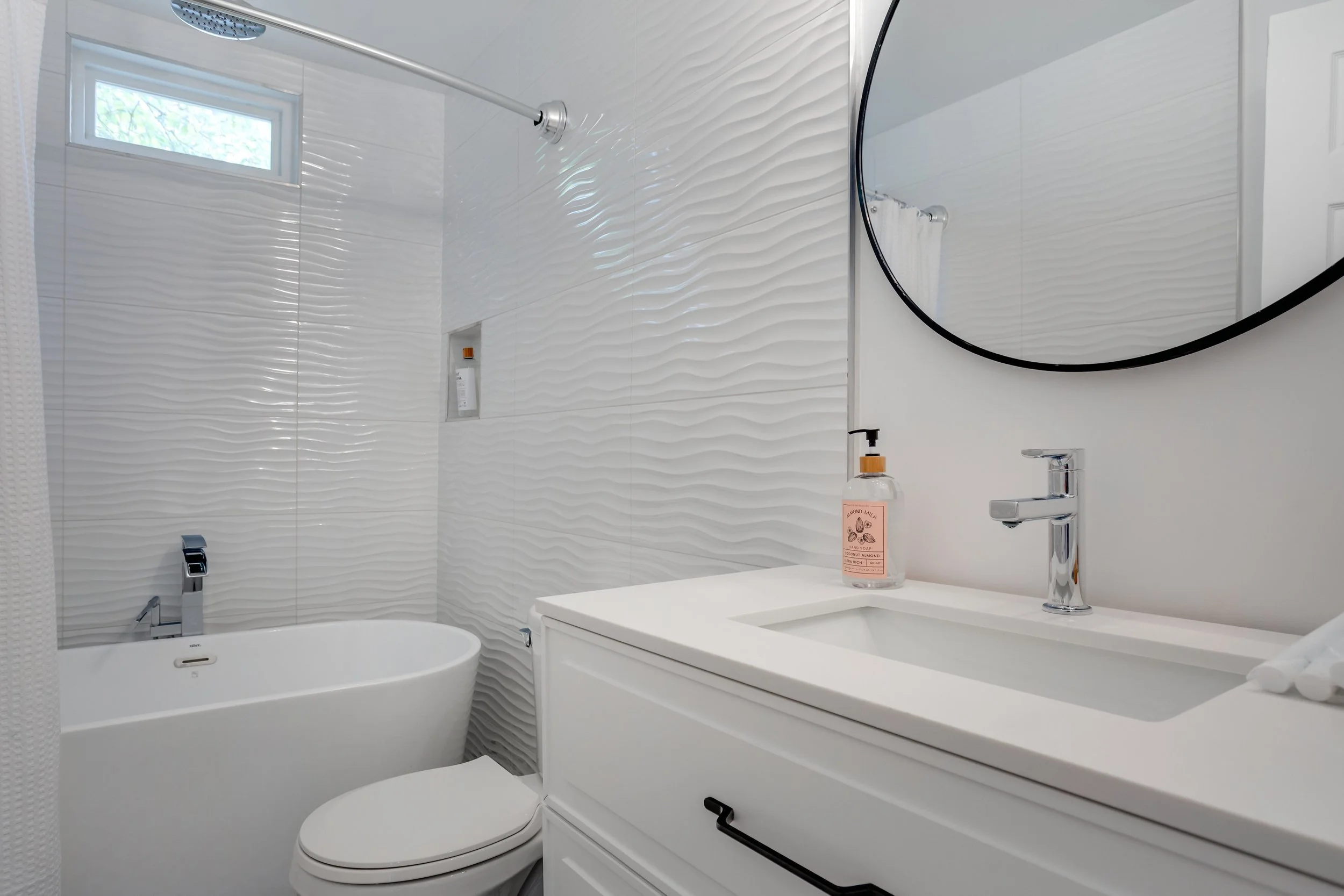 Charming 1949 home tastefully upgraded with modern touches, preserving original wood ceiling and floors for a timeless appeal.